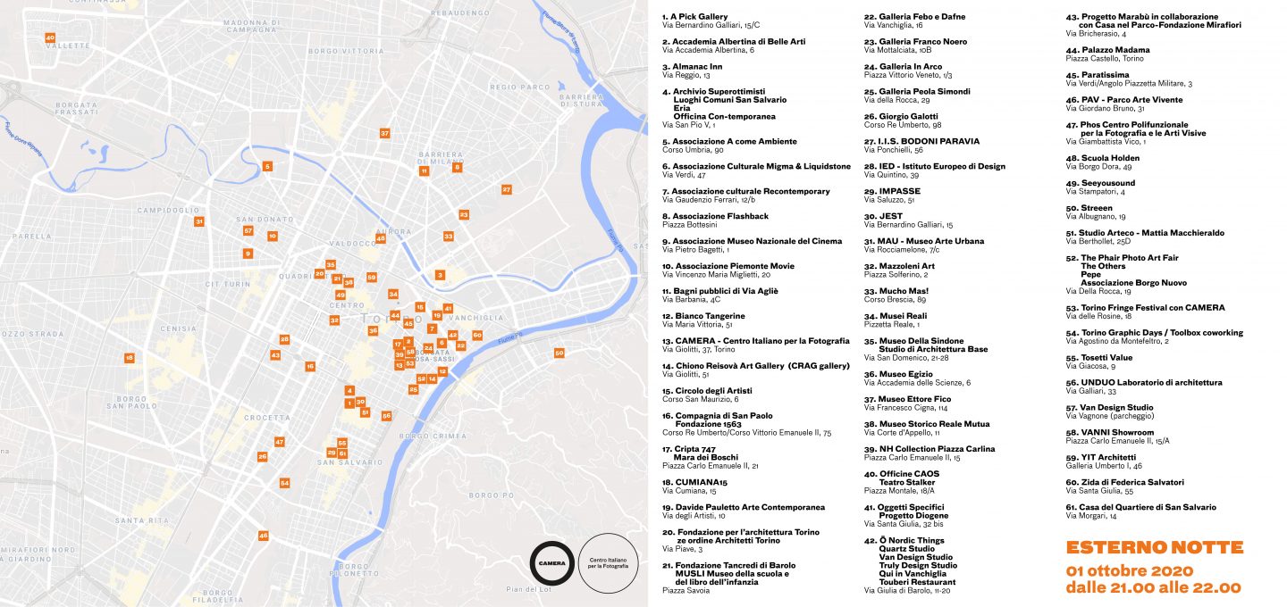 Giovedì 1 ottobre 2020, alle 21.00, la Fondazione Tancredi di Barolo – MUSLI (Museo della Scuola e del libro per l’infanzia) festeggia il quinto compleanno di Camera Centro Italiano per la Fotografia, prendendo parte a Esterno Notte, il grande evento di proiezioni diffuse per le vie e i quartieri di Torino, dove i balconi e le finestre diventano piattaforme da cui proiettare fotografie o video dedicati al tema comune dello stupore.