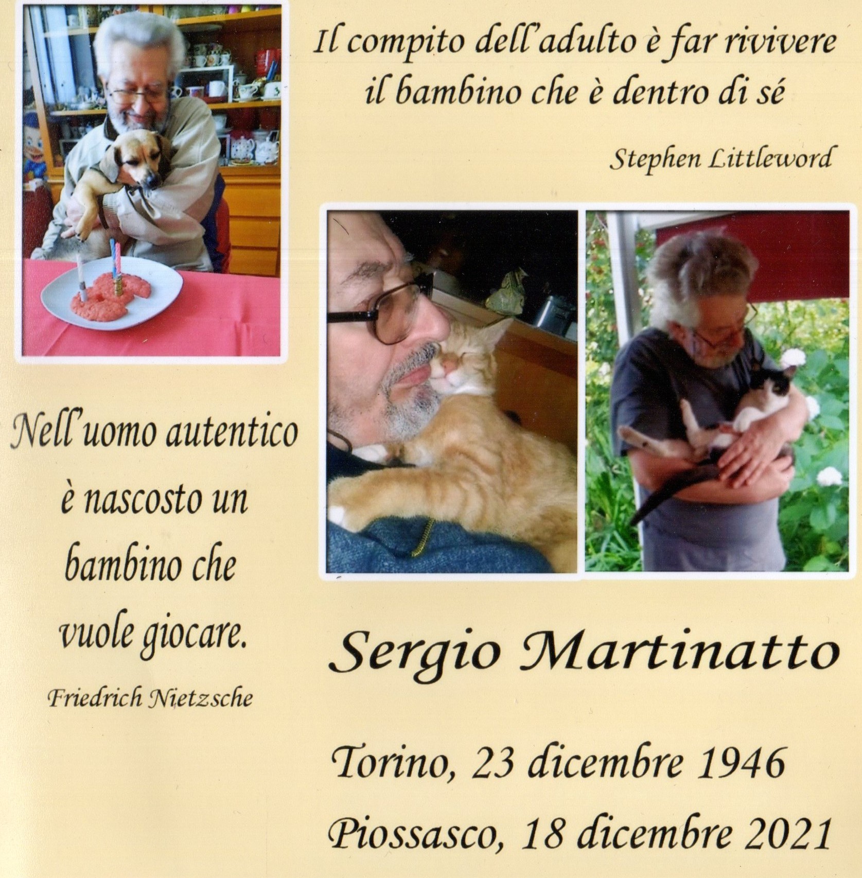 A tre mesi dalla scomparsa, la Fondazione Tancredi di Barolo ricorda l’amico Sergio Martinatto, grande collezionista e conoscitore di Pinocchio con cui si sono condivisi numerosi progetti negli anni passati. Con la consapevolezza che la memoria e l’operato dell’amico Sergio verranno perpetuati dalla moglie Michelina Tonarelli, con cui continueremo la proficua collaborazione, ci stringiamo al cordoglio della famiglia.