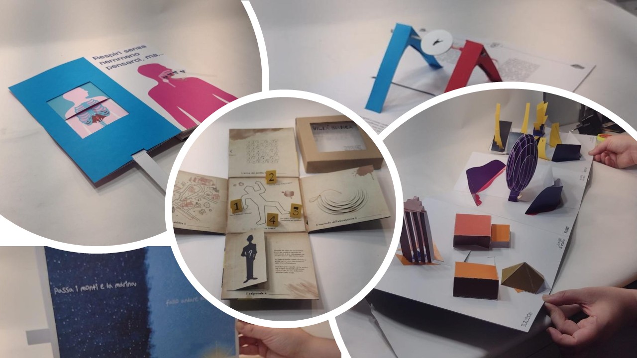 Da sabato 12 aprile saranno esposti nel Percorso Libro del MUSLI cinque libri animati realizzati dagli studenti del corso di laurea in Design e Comunicazione Visiva del Politecnico di Torino e del corso interateneo in Design sostenibile per il sistema alimentare dell’Università di Parma, nell’ambito del workshop Interactive Books curato da Paola Fagnola per la rassegna DesignWorkshop 2025.